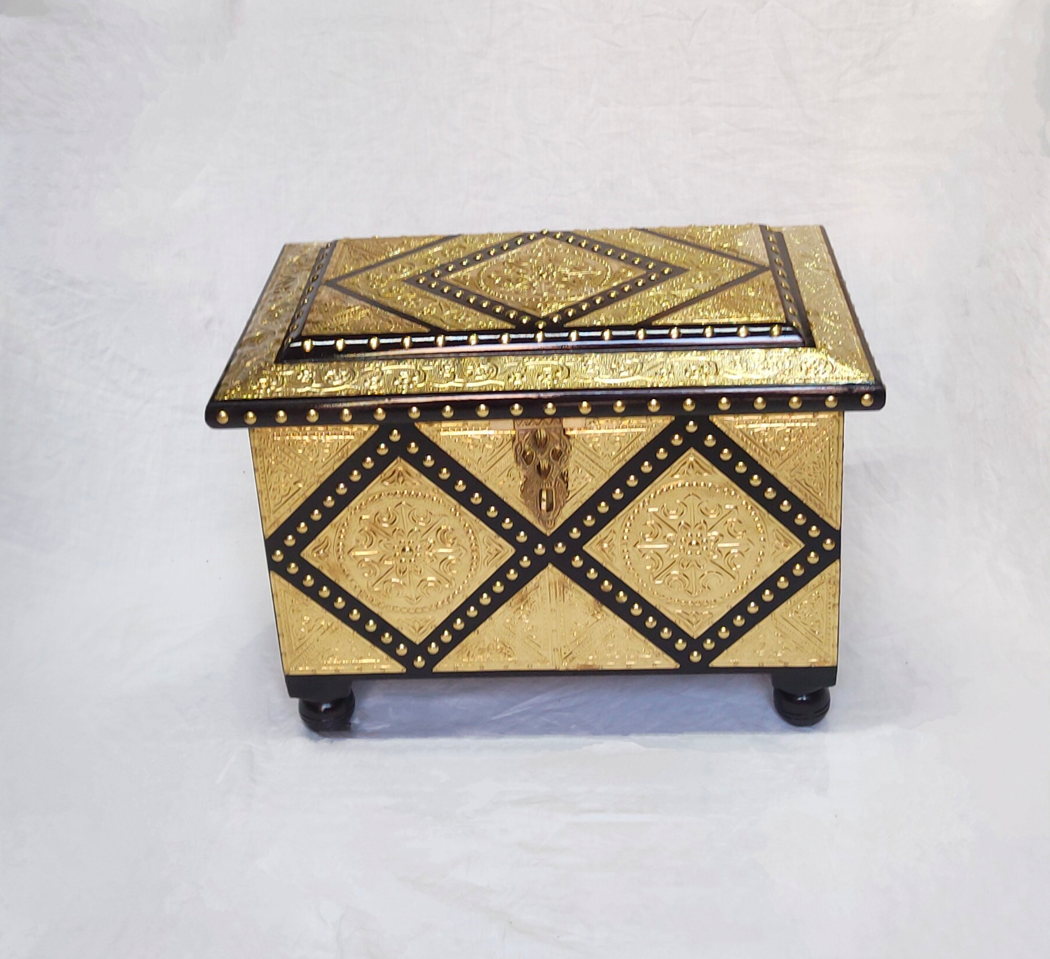 wooden Decorative Jewellery Box (Line Pattern Reddish)