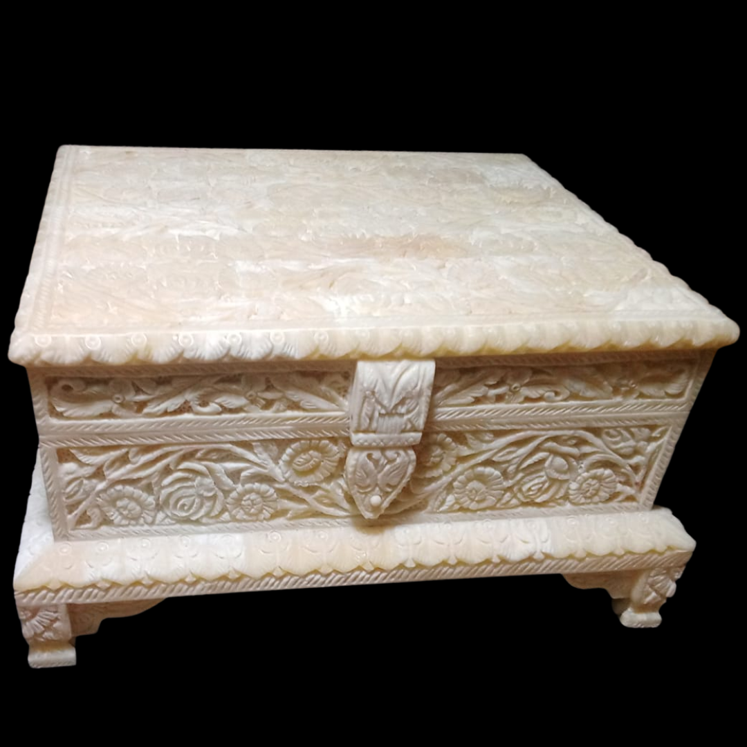 Entirely handcrafted using traditional Mughal-era techniques. Each piece is hand-carved with precision, featuring detailed jali patterns and camel bone inlay, without the use of machines.